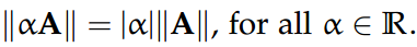 标量乘法律:|| αA ||=|α| || A ||,α∈R。