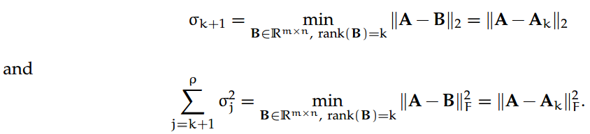 定理 10. 让 A = UΣV^⊤ ∈ R^m×n 作为 A 的稀疏 SVD;设 k < rank(A) = ρ为整数,让