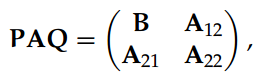 此外,矩阵 p-范数对于矩阵的初等变换是不变的,即||PAQ||p = ||A||p,其中 P 和 Q 为对应维度的初等变换矩阵。同样,如果我们考虑矩阵分割: