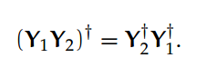 关于两个矩阵乘积的伪逆,有如下特别重要的属性:对于 m×p 阶矩阵 Y1 和 p×n 阶矩阵 Y2,且满足 Rank(Y1)=Rank(Y2),即秩相等,[9, Theorem 2.2.3] 表明: