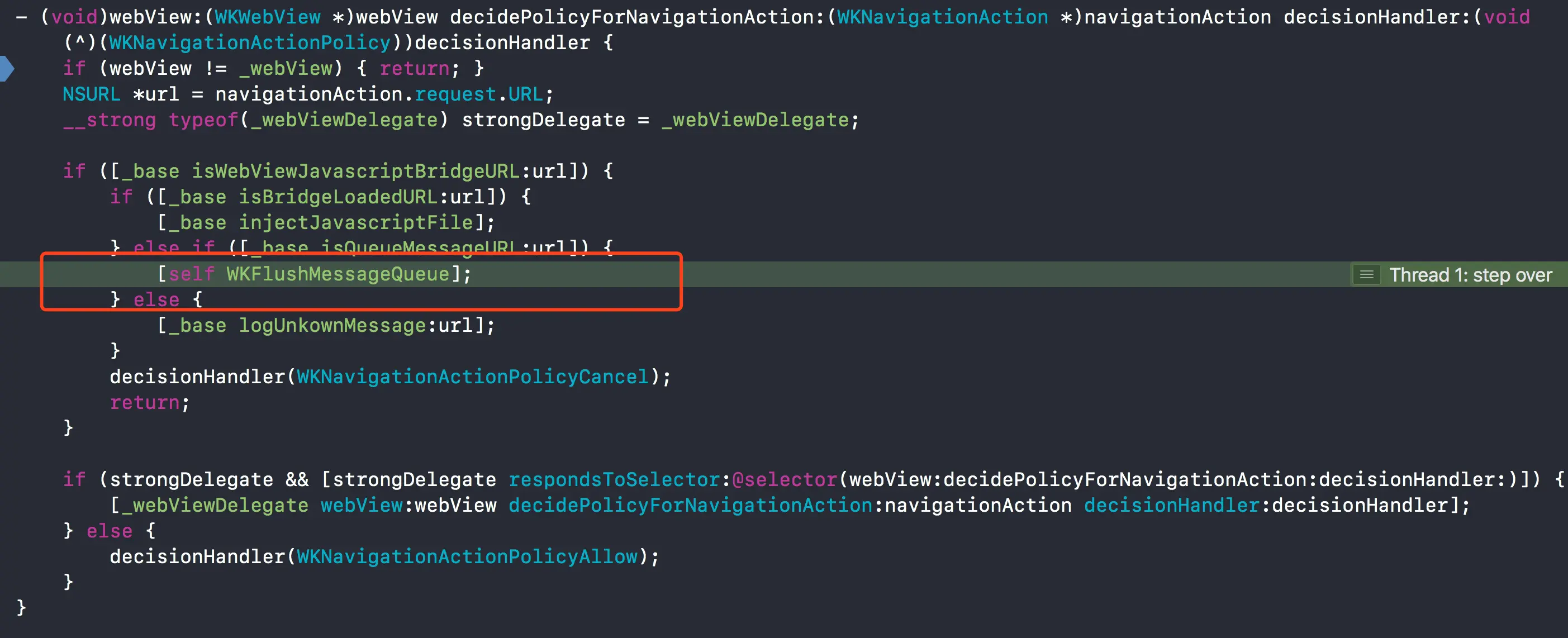 if (strongDelegate && [strongDelegate respondsToSelector:@selector(webView:decidePolicyForNavigationAction:decisionHandler:)]) {