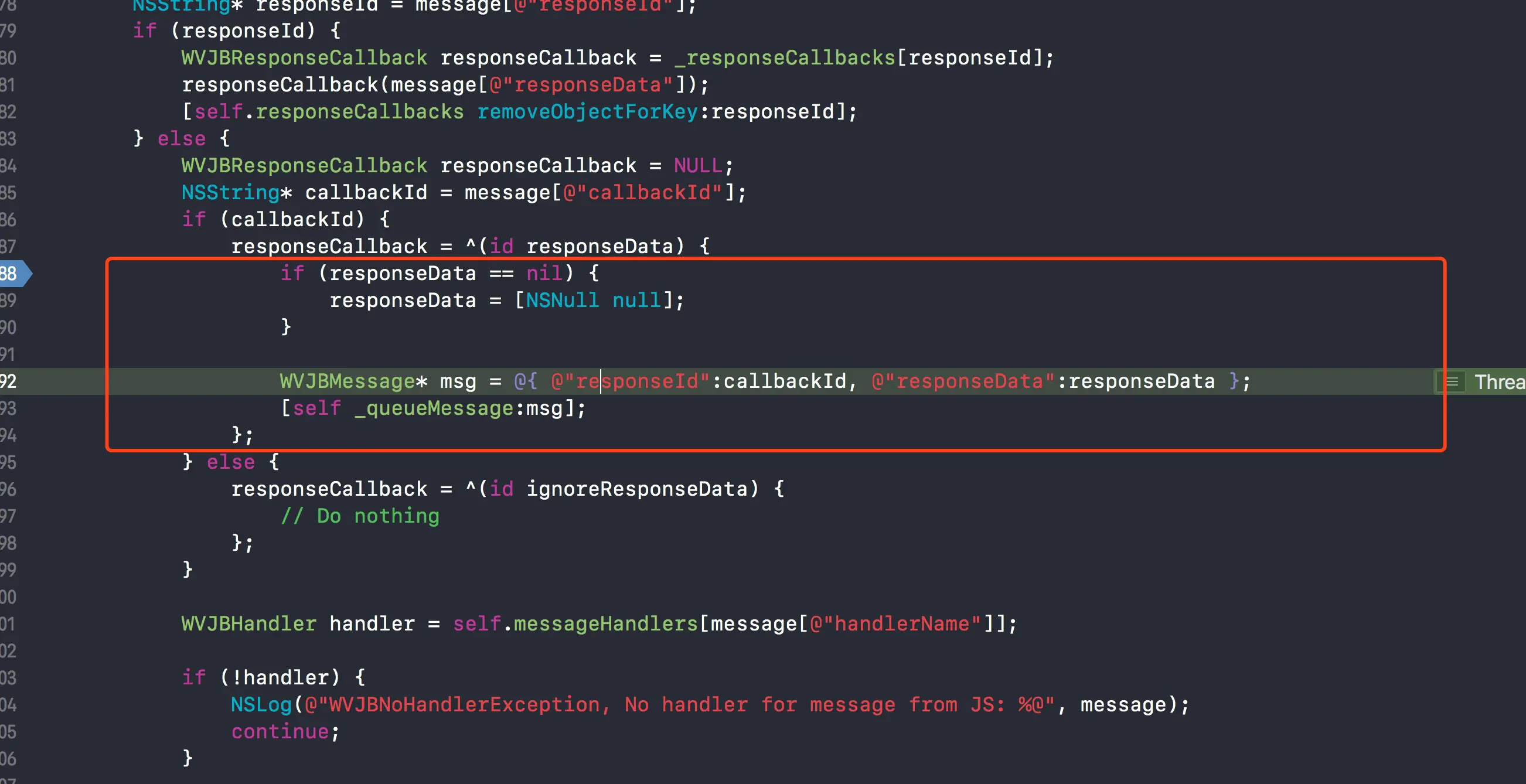 WVJBResponseCallback responseCallback = _responseCallbacks[responseId];