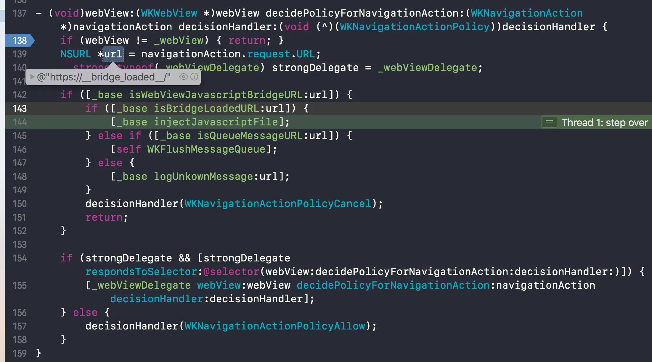 if ([_base isWebViewJavascriptBridgeURL:url]) {//是不是WebViewJavascriptBridge约定的url