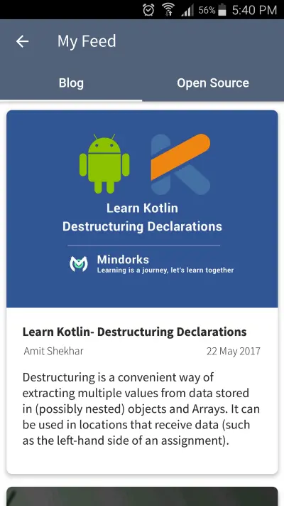 如果您觉得有困难或需要任何帮助或改善,请在 Mindorks 社区提出你的问题:点击这里加入 Mindorks Android 社区,在这里我们可以相互学习。