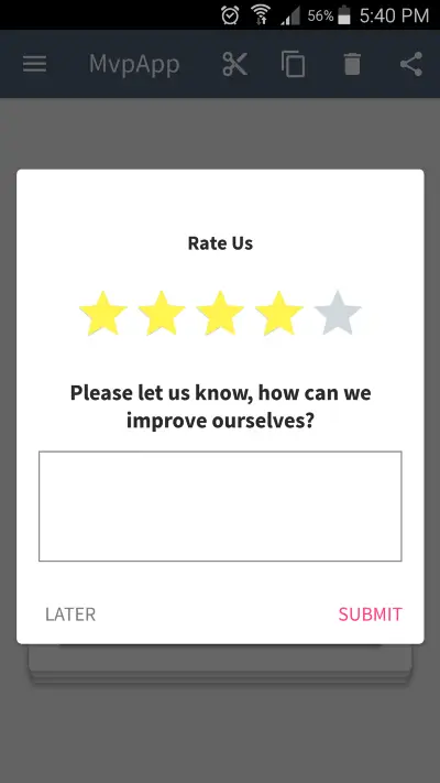 - 评分对话框显示 5 个星星,用户可以根据自己的满意度来选择星星的个数。