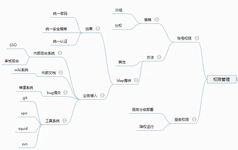 C、 内部后台及工具系统的LDAP账号整合,把不同工具系统及后台账号、squid、vpn、svn、git等密码及管理策略实现了统一,
