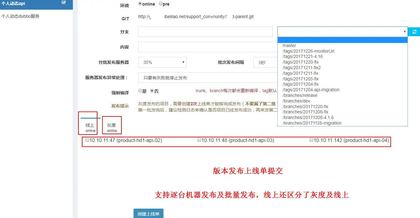 代码版本选择发布