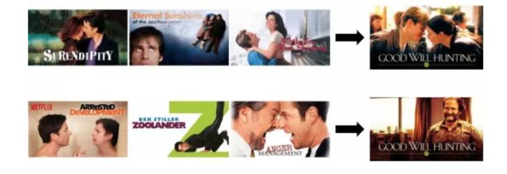 对于看过许多浪漫爱情(类型/主题)电影的人,如果他的推荐图片中包含马特·达蒙(Matt Damon)和米妮·司各德(Minnie Driver)的信息,可能他会对《心灵捕手》感兴趣,而如果是对于看过很多喜剧片的用户,我们在推荐图中包含知名喜剧演员罗宾·威廉斯(Robin Williams)的信息,吸引他的几率可能更大。