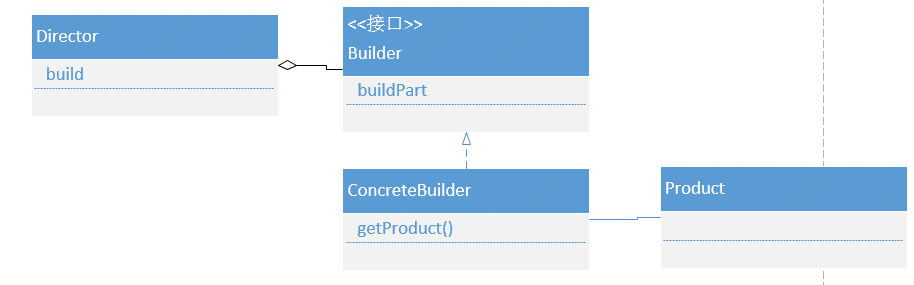 Director角色是与客户端打交道的角色。Director将客户端创建产品的请求划分为对各个零件的建造请求,再将这些请求委派给具体的ConcreteBuilder角色。ConcreteBuilder是做具体建造工作的,但是对客户端是透明的。