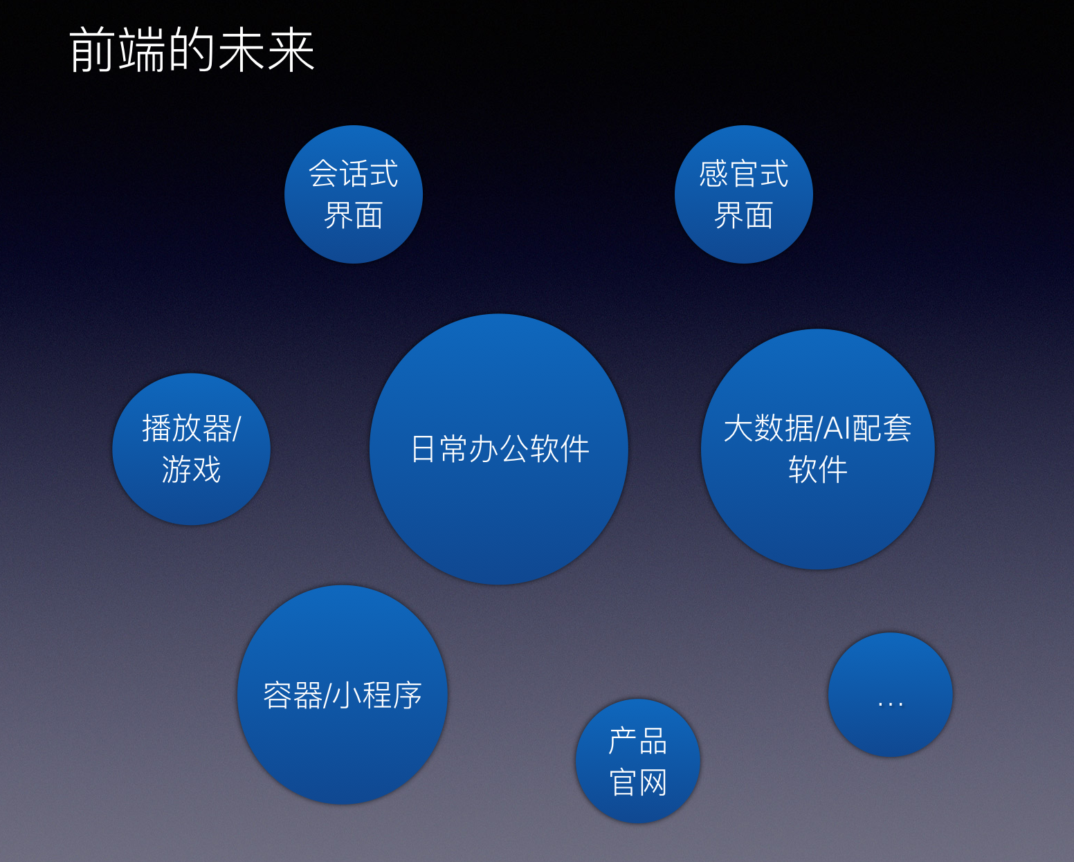 - 无界面,未来会有大量IoT设备(IoT有自己的通信协议和规范,前端的工作是在用户看不见的后台)