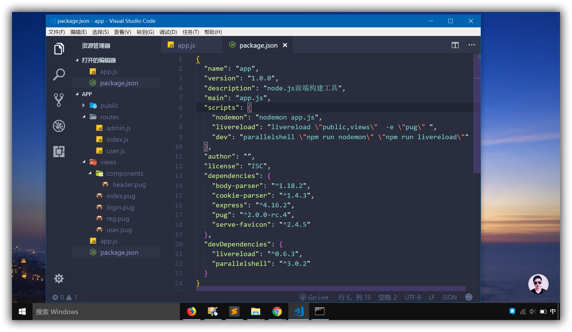 (ps:笔者的nodemon模块安装在全局,所有没有写入package.json)