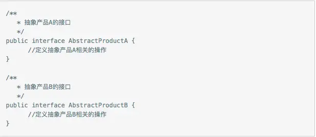 - AbstractFactory:抽象工厂,定义创建一系列产品对象的操作接口。