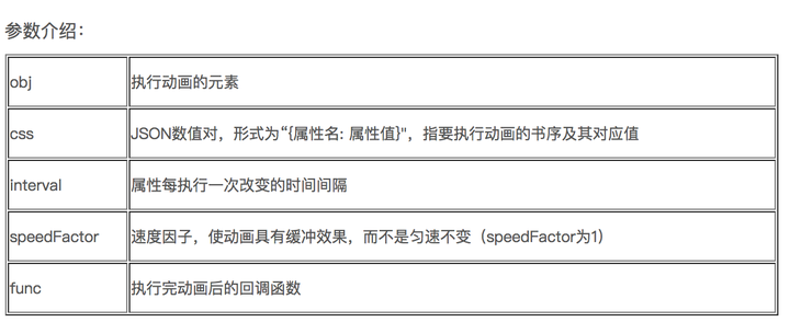 speedFactor速度因子,使动画具有缓冲效果,而不是匀速不变(speedFactor为1)func执行完动画后的回调函数