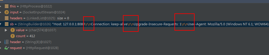 Cookie: BAIDUID=462A9AC35EE6158AA7DFCD27AF:FG=1; BIDUPSID=462A9AC35EE6158AA7DF027AF; PSTM=1506310304; BD_CK_SAM=1; PSINO=7; BD_HOME=1; H_PS_PSSID=1459_24885_21115_25436; BD_UPN=12314353; sug=3; sugstore=0; ORIGIN=2; bdime=0\r\n大家可以发现,其实我们使用socket读取HTTP请求时候,发现每一行都会有'\r\n'这个回车换行符,只不过在我们浏览器按F12时被浏览器自动解析成了换行而已,我们分析上面的这个请求信息得出以下规律:
