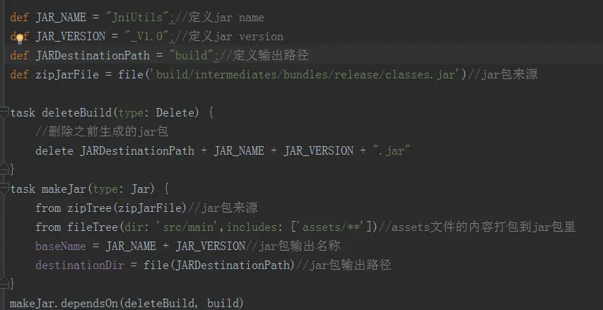 def JAR_NAME = "JniUtils";//定义jar name
