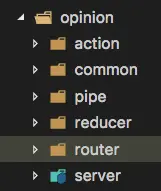 每个模块单独的action、router、reducer与server。