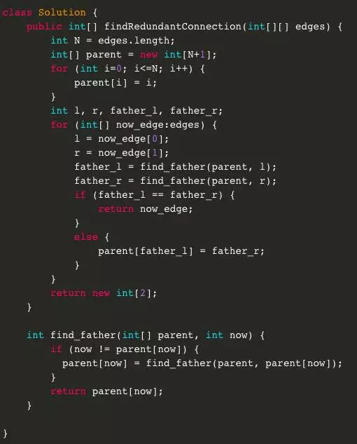 Ⅸ. 虽然题目强调如果有多个答案输出最后一条,但用上述方法只会找到一条“多余”的边,所以代码中是从前往后遍历所有边