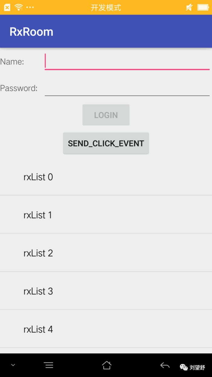 言归正传,有了上面的储备,就可以愉快看下表单验证的实现了,如果输入的名字"RxBind",密码"123",就会在subscribe中接收到aBoolean==true,然后我们在使能按钮,RxView.clicks这个可以先忽略,我们在第二部分进行详细说明。