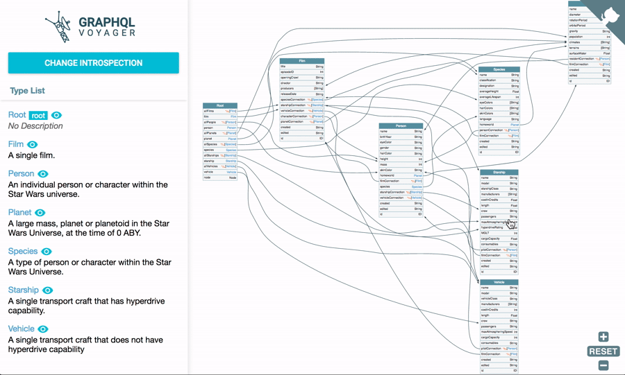graphql-voyager —— Represent any GraphQL API as an interactive graph. It's time to finally see the graph behind GraphQL! 用交互式图表展示任意的 GraphQL API,总算能看见