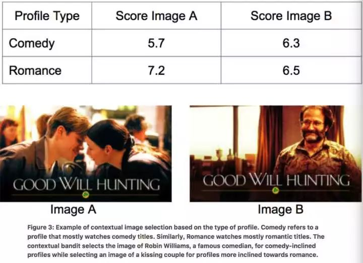 本文要解决的核心问题是在Netflix的推荐系统中,为给用户推荐的每部剧集选择不同的封面图片,以提高用户的点击和观看时长。为什么需要将展示图片做个性化呢?因为剧集的题目很多时候并不足以给出足够的信息,以吸引用户的观看,而如果图片能够投其所好的话,则可以提高用户感兴趣的概率。有的用户喜欢某个演员,那么在剧集图片里展示该演员的剧照会更有效;有的演员喜欢喜剧,那么通过图片来告诉用户这是一部喜剧,则更有可能吸引用户;此外,不同用户可能有着不同的审美,那么对其展示更符合其审美的图片也会有更好的效果。