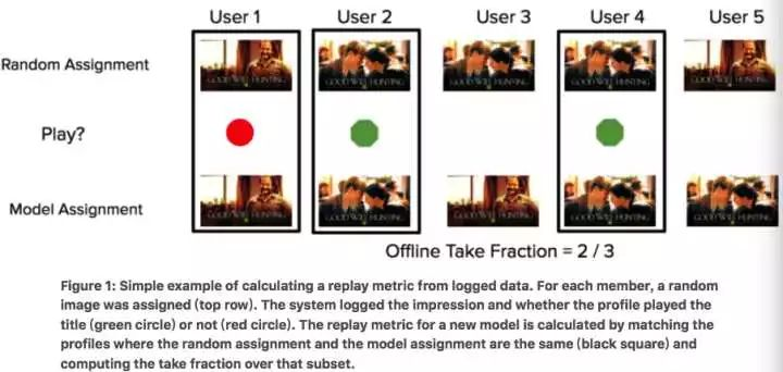 在线上留出部分随机流量,对这些流量展现随机结果,而不是算法计算出来的结果,在这个场景下,就是展现一个剧集的随机封面。这是整个环节中最重要的一环,也是保证评测无偏的基础。(这里的偏指的是什么?留给读者想一想)。