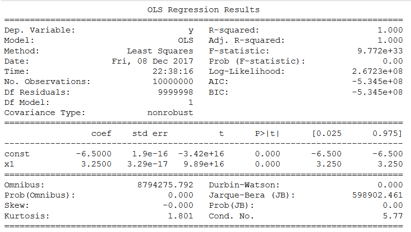 由于在机器学习中,Scikit-learn 是一个十分流行的 Python 库,因此,人们经常会从这个库调用线性模型来拟合数据。除此之外,我们还可以使用该库的 pipeline 与 FeatureUnion 功能(如:数据归一化、模型回归系数正则化、将线性模型传递给下游模型),但是一般来看,如果一个数据分析师仅需要一个又快又简单的方法来确定回归系数(或是一些相关的统计学基本结果),那么这并不是最快或最简洁的方法。