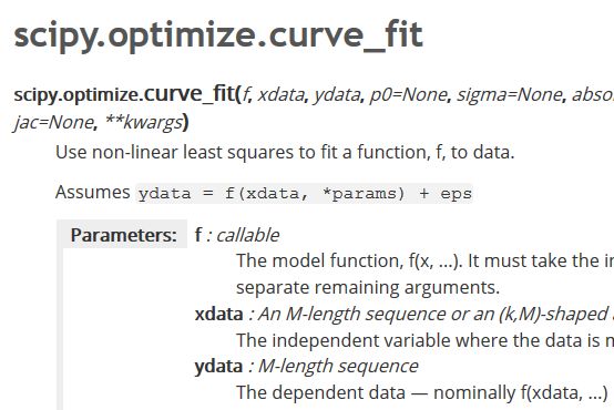 详细描述参考:https://docs.scipy.org/doc/scipy/reference/generated/scipy.optimize.curve_fit.html