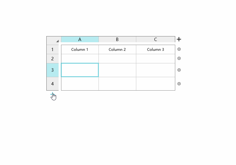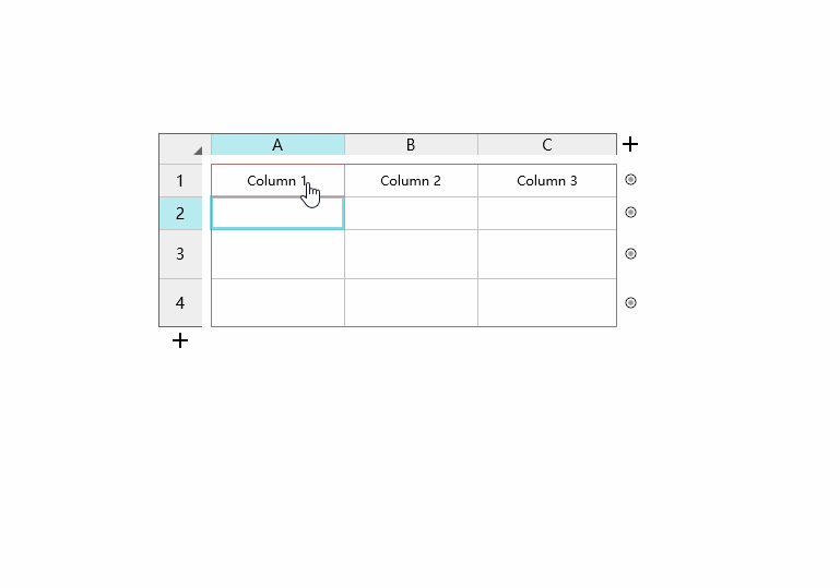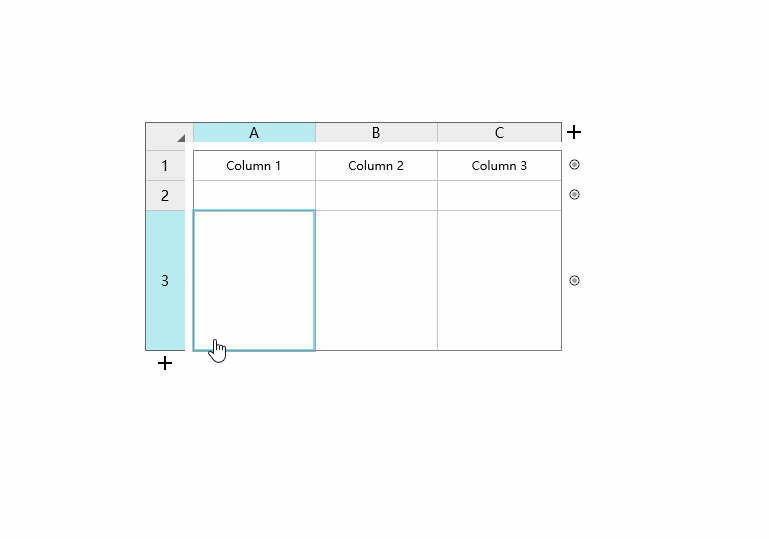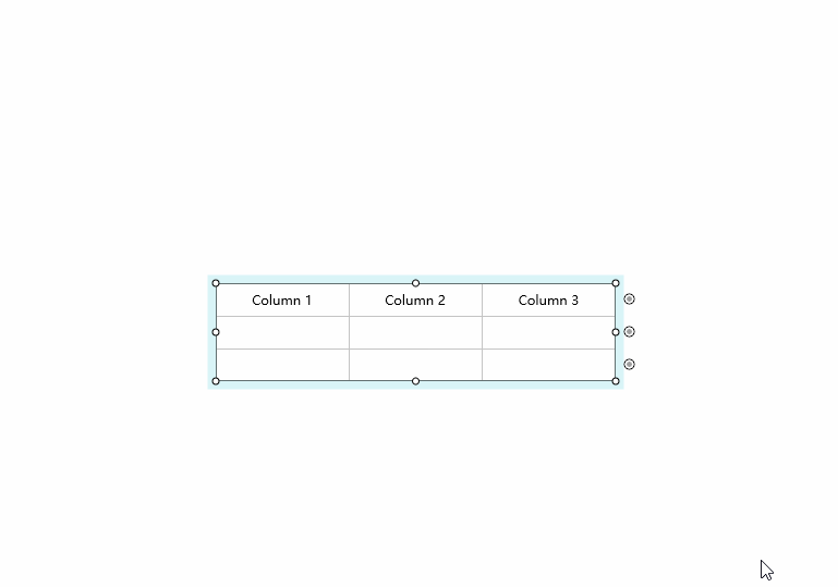 可以发现Axure是在右侧的属性面板,单击图标进行增删操作。而Mockplus可以在表格辅助栏的底部或右侧的 “+” 图标按钮上来快速添加行列,除此之外,Mockplus还可以通过拖动 “+” 图标按钮来批量添加行列,这个非常棒,确实方便,只需要拖动鼠标,我就可以一次添加多个行列,而且还有数字指示当前的行列数量。当然,两者都支持在表格上通过右键菜单来增删单元格(Mockplus是在表格的辅助栏上)。