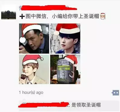 到早上11点,朋友圈仍然不断地扩散相应的@微信官方朋友圈语句,最终虽然我没有实际操作,但是朋友圈不少有朋友还在为为什么不能自动生成圣诞帽而在朋友圈中抱怨或请教。
