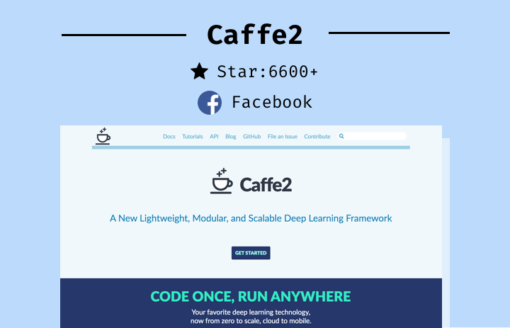 是一个深度学习的库,优势是它是由 Facebook 团队来维护的。可能深度学习方面大家听得最多的是 Tensorflow,但 Caffe2 学习起来更简单轻量,并且它的背景能支持它有一个健壮的发展。