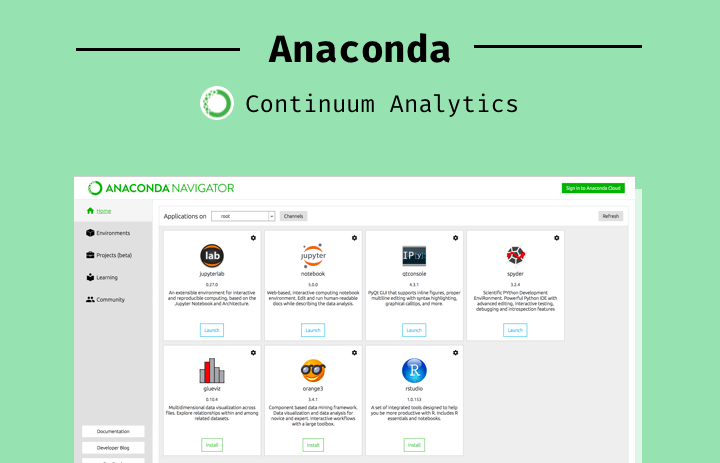 如果你想用 Python 搞数据方面的事情,就安装它就好了,它甚至开发了一套 JIT 的解释器 Numba。所以 Anaconda 有了 JIT 之后,对线上科学计算效率要求比较高的东西也可以搞了。