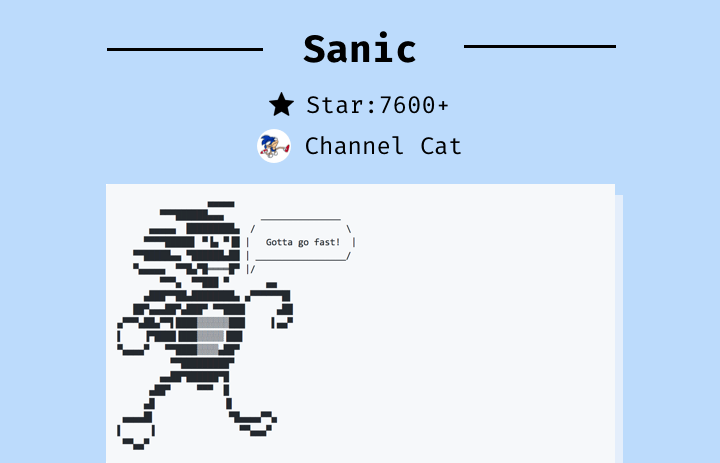 这个库的名字和之前一个很火的梗有关,有人在 youtube 上画 Sonic 那个蓝色小人,结果一本正经的画出了下面这货,给它起名叫 Sanic,还配了一句话是 Gotta go faster.