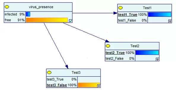 接下来的这张图显示,在给定测试结果的病毒是否存在的条件下,它的结果也取决于测试(如上面的表格所示):