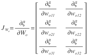 对于偏差项bo可以采用相同的方式进行更新。对于批处理的N个样本,对输出层的梯度∂ξ/∂bo的计算如下: