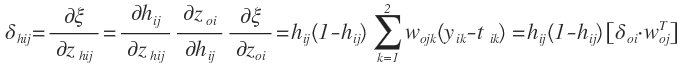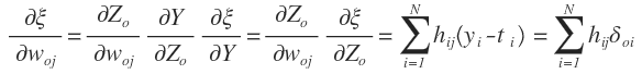 对于N个样本,对输出层的梯度δwoj是通过∂ξ/∂woj计算的,具体计算如下: