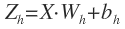 将二维的输入样本X转换成三维的输入层H,我们需要使用链接矩阵Wh(Whij表示第i个输入特征和第j个隐藏层神经元相连的权重)和偏差向量bh: