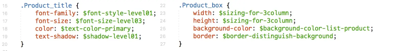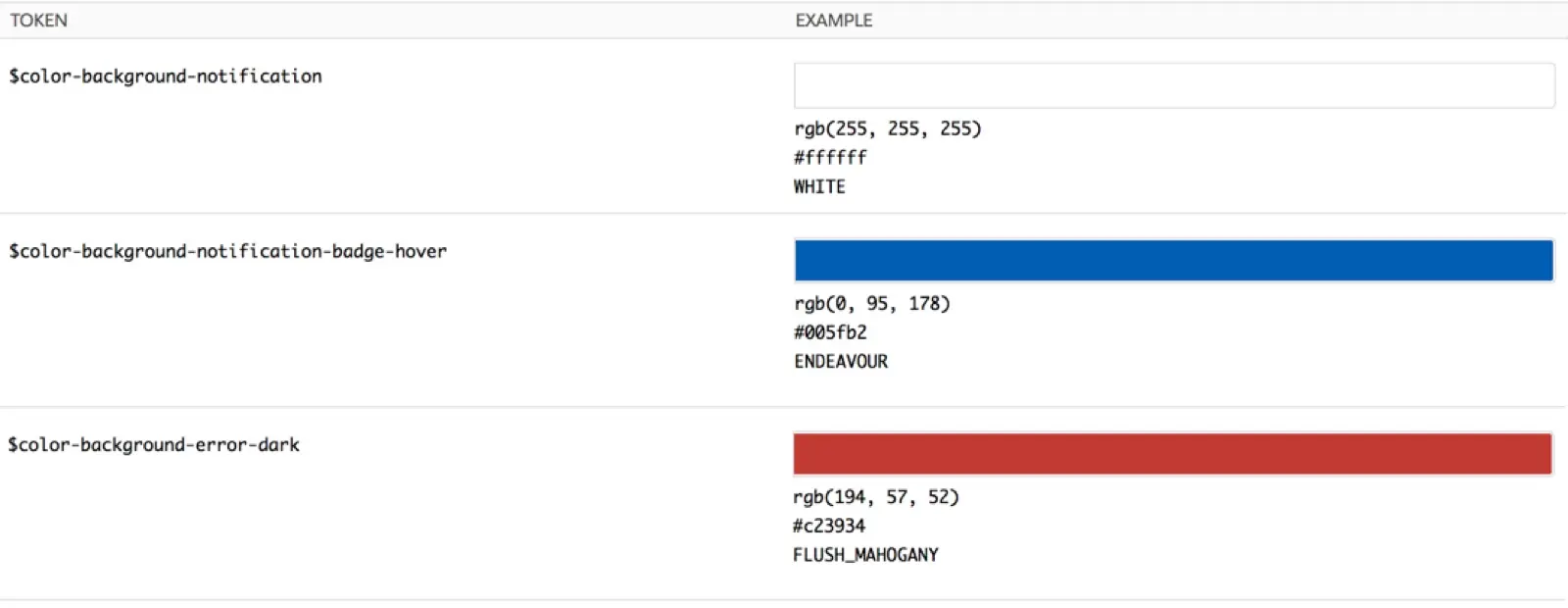 举个例子,在背景色部分 Lightning 定义了(节选) notification、badge hover、error dark 等 token,并在建立样式体系的过程中为其定义了具体的色值。于是在开发的过程中,大家所看到的将是更为语义化的描述。