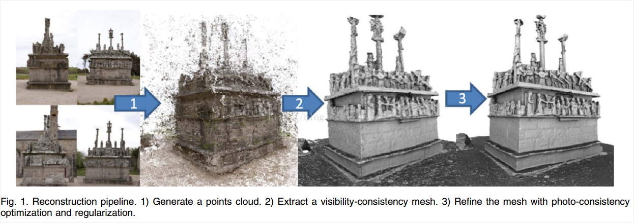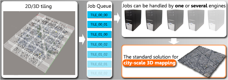 ContextCapture(原 Smart3D)的建模效果在业内的口碑一直都很不错,号称是法国两家最顶级的研究机构 25 年的研究成果,技术水平为业界标杆。互联网巨头公司腾讯也曾与 Acute3D 合作过,利用航拍和街景拍摄技术,展开针对多个超大城市的大规模三维城市建模。其实现原理跟传统的像方匹配或物方匹配不同,ContextCapture 是直接基于物方 mesh 进行全局优化,示意图如下:
