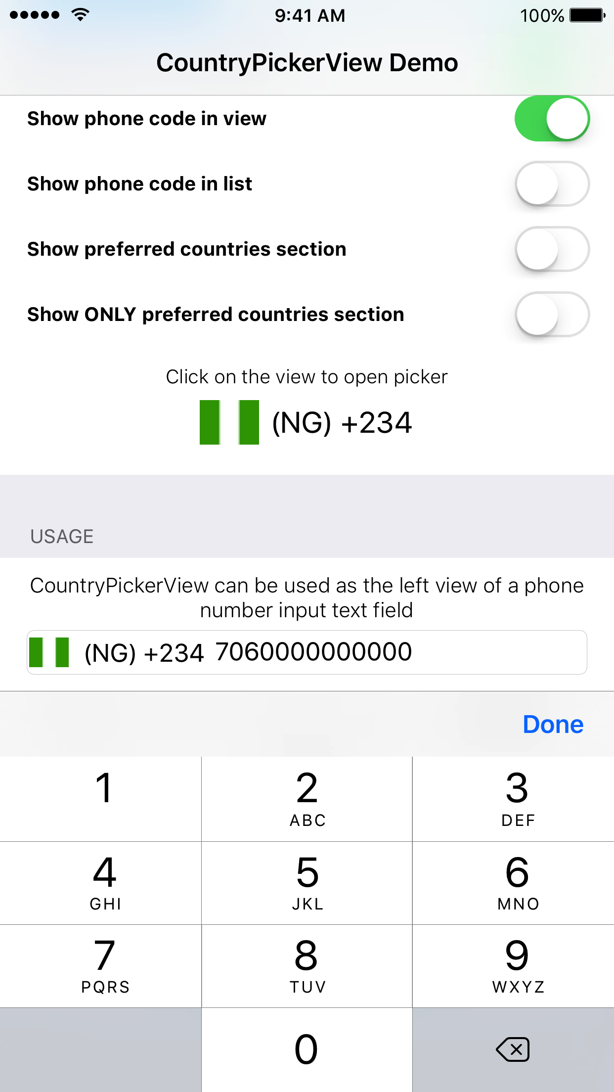 This means your users do not have to worry about entering the country's phone code in the text field. This also ensures you get a valid phone code from CountryPickerView instead of relying on your users.