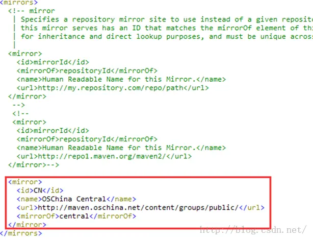 修改中央库路径(在网络正常的情况下,可以从远程中央库下载缺失的jar包,我这里使用了Oschina的中央库,如果网络有问题,