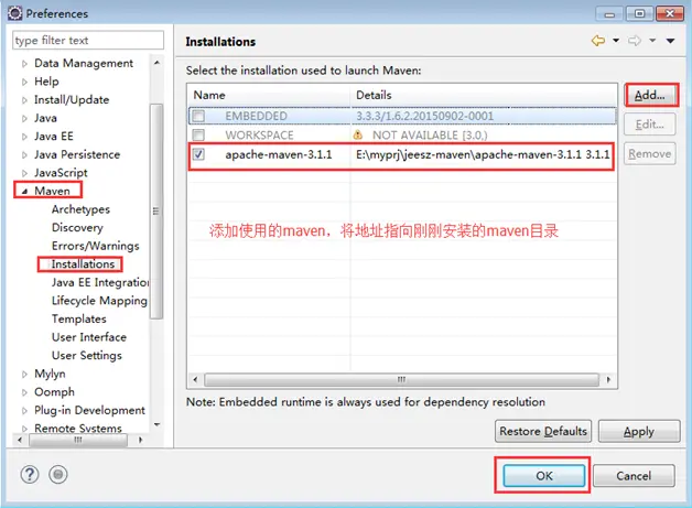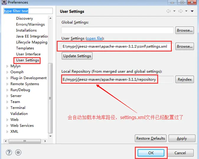 添加本地库地址:E:/myprj/jeesz-maven/apache-maven-3.1.1/repository