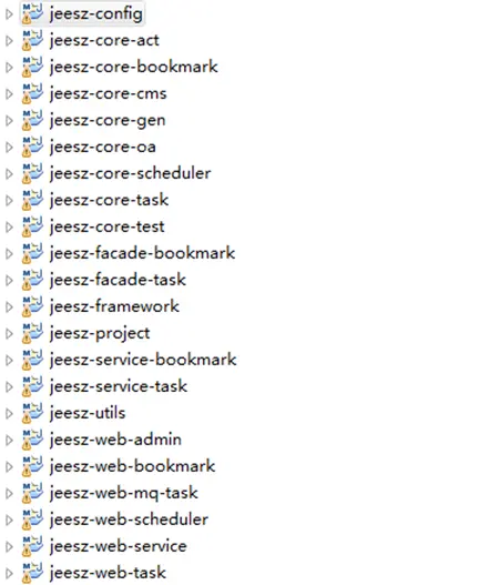 Jeesz-service-bookmark、jeesz-service-task为dubbo服务提供者(这边只通过收藏和待办项目来对dubbo服务项目开发做相关介绍,客户可以根据自己的业务去拓展dubbo服务,可以同时部署,也可以拆分部署)