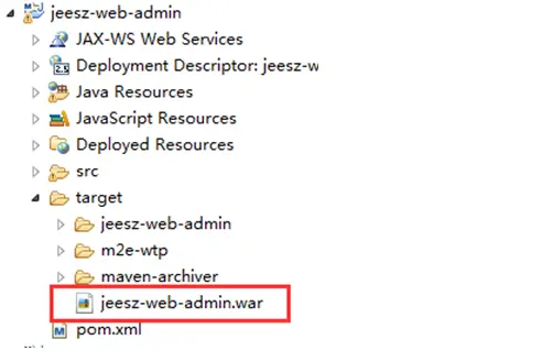 打好的包(包含war、jar),都在target文件夹下,这边只以jeesz-web-admin为实例截图如下: