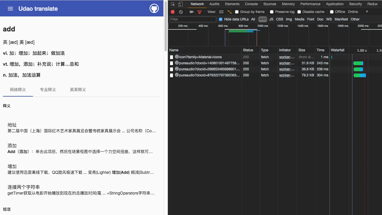 注意:本项目显式(菜单可点击)的几个路由初始化都没有请求数据,但是单词解释的详情页是会在