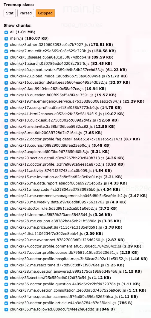 想要减少资源体积大小,首先需要知道哪些资源时应该/可以被删除的。由于项目是基于 Webpack 构建的,因此可以使用Webpack Bundle Analyzer进行分析Webpack 生成的包体组成。然后根据实际情况进行移除就好。