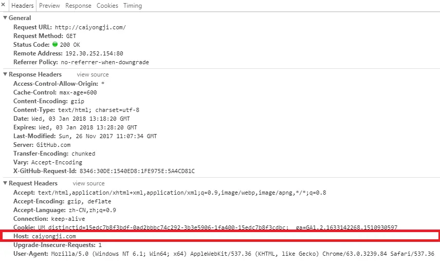 可以看出,反向代理Nginx可以获取到HTTP请求中的域名。由此可以推断出DNS解析并不是单纯的将域明转换成IP地址。那么我们看一下HTTP报文是什么样子。