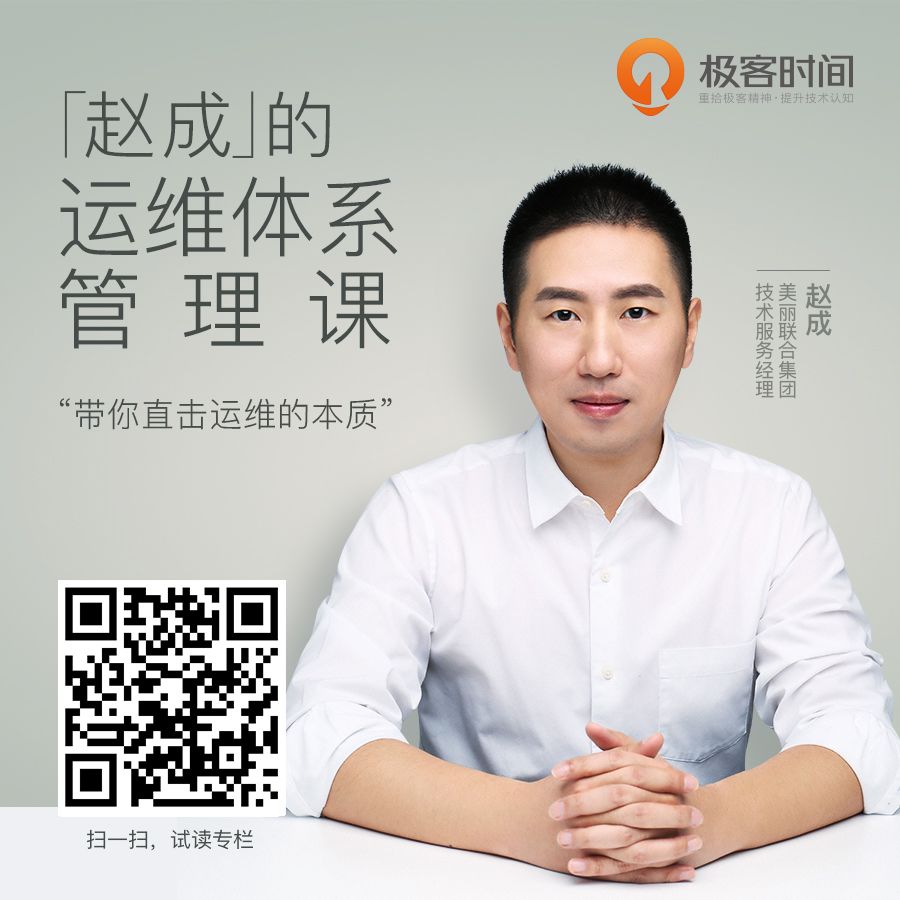 应用运维体系如何建设?体系稳定性如何保障?云计算时代运维又该如何转型?十年运维“老司机”赵成现在极客时间开设“赵成的运维体系管理课”,聚焦分布式软件架构应用运维领域,分享对运维的痛点和问题深度思考。识别下方二维码即可查看详情。