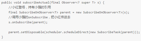 看下小强(ObserveOnObserver)的 onSubscribe: