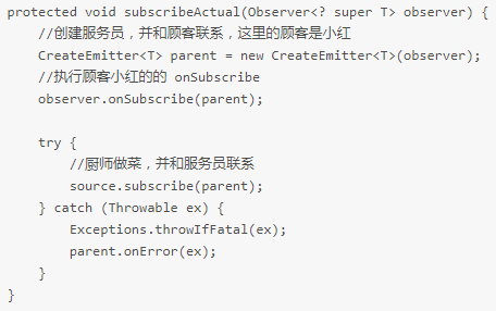 会先执行肯德基2号店的 subscribeActual 方法,这里的 observer 是小明