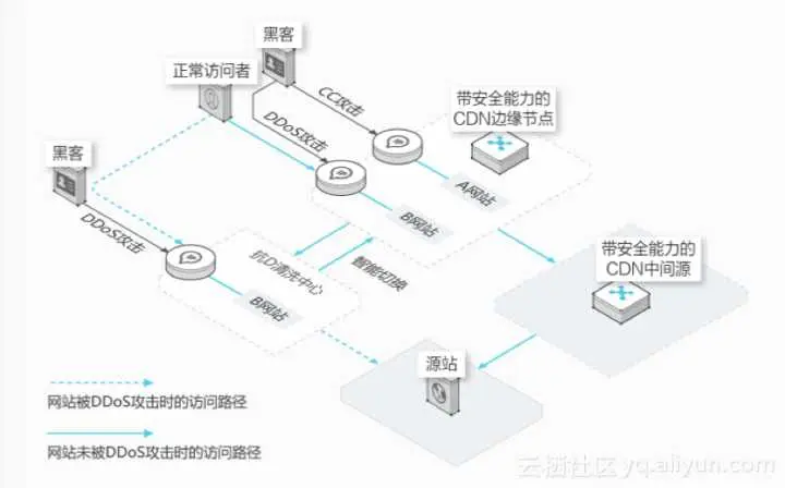 我们知道,网站使用CDN服务进行内容加速已经成为一种常态,但是有不少金融、游戏等行业的用户业务经常受到攻击,攻击流量动辄上百G甚至更高,普通 CDN节点的抗攻击能力不能满足大流量攻击的专业清洗要求。如果单纯使用高防IP 服务,高防节点过少、运营商和大区不能完全覆盖等问题,也无法兼顾到业务加速的需求。此外,采用串联高防IP和CDN服务,用户不能就近访问资源,加速效果也会大打折扣。另外,目前普通 CDN的安全防护措施无法实现主动防御,存在多终端访问瓶颈、恶意爬虫带来的流量消耗等问题。为此,阿里云推出了SCDN安全加速服务,成功解决了以上问题。